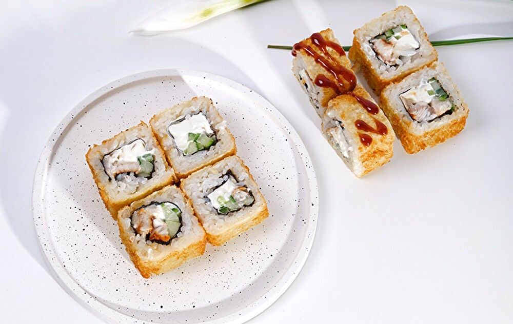 Угорь, свежий огурец, сыр филадельфия, унаги соус